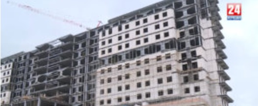 И именно в этих помещениях перекрытия под оборудованием будут усилены. Здесь, по проекту продумано всё до мелочей. 16 узкопрофильных подразделений, а также отделения реанимации, интенсивной терапии, лаборатории – но пока всё это на бумаге. Сейчас строители только закончили металлический каркас здания и в ближайшее время начнётся укладка фасадных стен, кровли, утепление корпуса, установка вентиляции. Задействовано 450 рабочих, они трудятся в 2 смены.