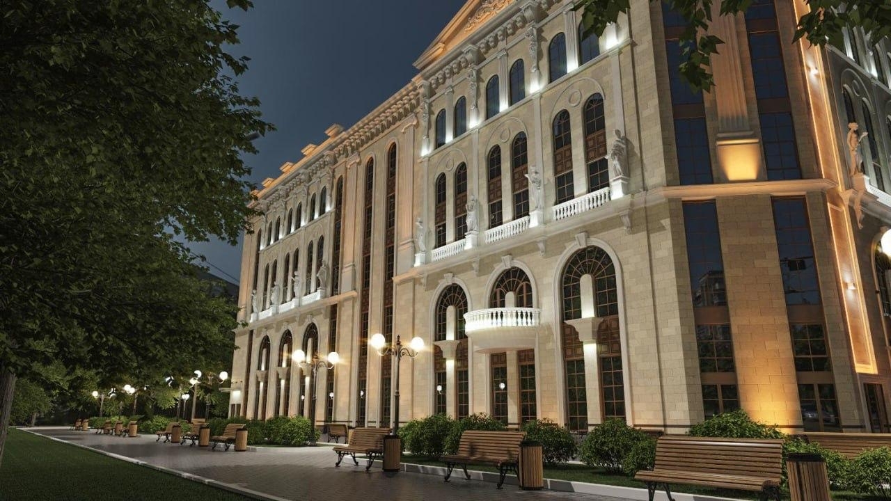 Проект разработан архитекторами, работавшими над Большим театром имени Товстоногова в Санкт-Петербурге. Фасад здания украсят фигуры мифологических героев, придавая ему особую выразительность.
