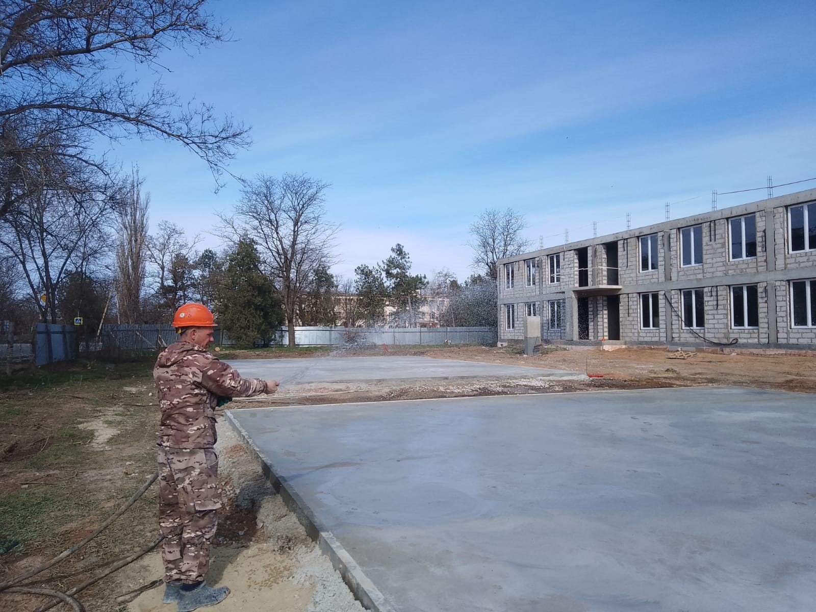 В настоящее время выполняется прокладка наружных сетей электроснабжения, заполнение стен газоблоком, усиление стен, благоустройство.