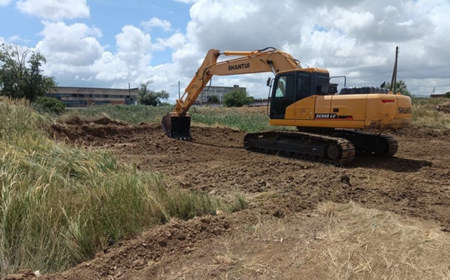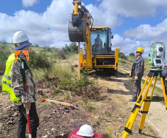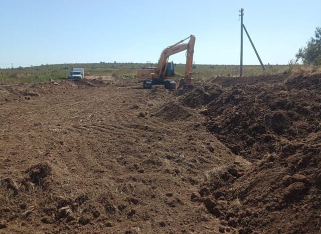 Производится обследование территории для установления необходимости очистки местности от взрывоопасных предметов, устройство подъездных путей на площадке КОС, устройство пунктов геодезической разбивочной основы.
