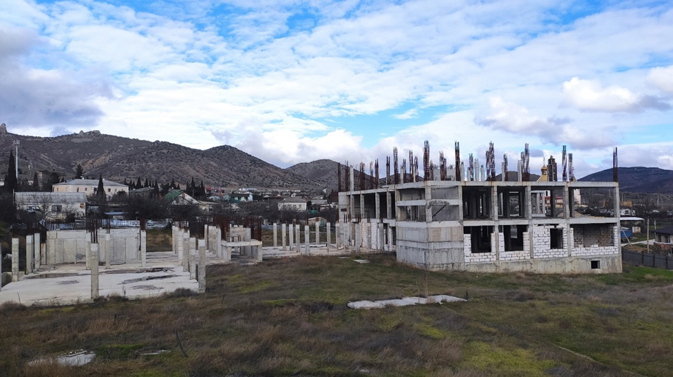 В селе Морское городского округа Судак продолжается строительство детского сада на 140 мест. Строительно-монтажные работы проводит ООО «Теплостройсервис» по контракту стоимостью 386,5 млн руб.