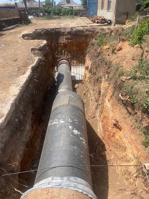 В Городском округе Евпатория Республики Крым продолжается строительство магистрального водовода протяжённостью 12,128 км, в том числе водопроводной насосной станции производительностью 88,5 тыс. м3/сут., резервуара чистой воды объёмом 12 тыс. м3.