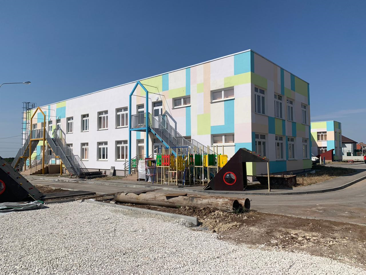 В настоящее время выполняются завершающие работы по благоустройству территории, озеленению площадок, комплектации и расстановки мебели и оборудования, уборки помещений.