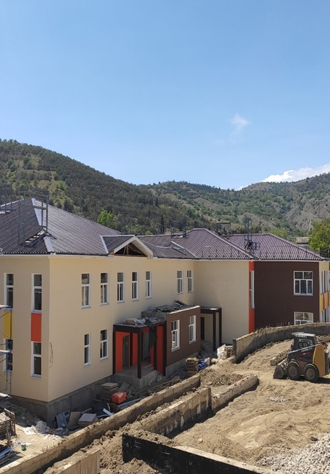 В настоящее время ведутся работы по устройству кровли, фасада и установке систем воздухообмена. Производится монтаж электрошкафов, электромонтажные работы, выполняется строительство детских площадок.Завершение строительно-монтажных работ планируется в 2025 году.